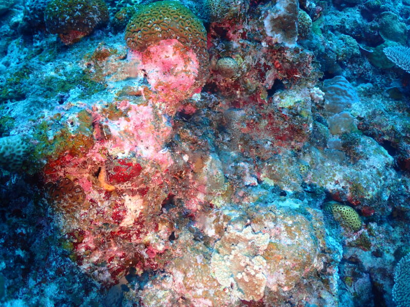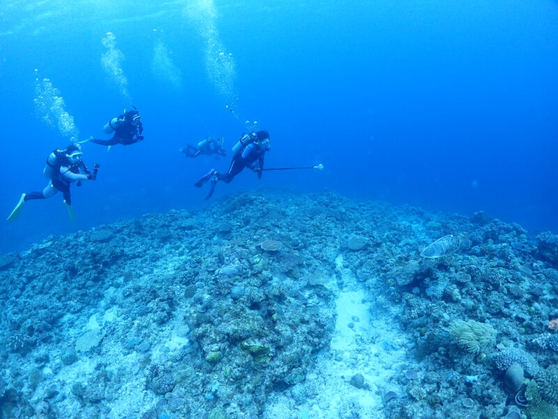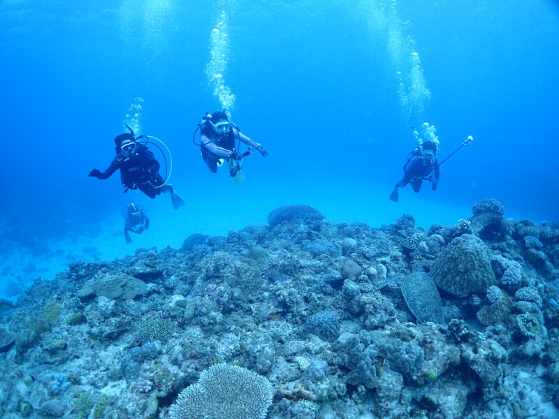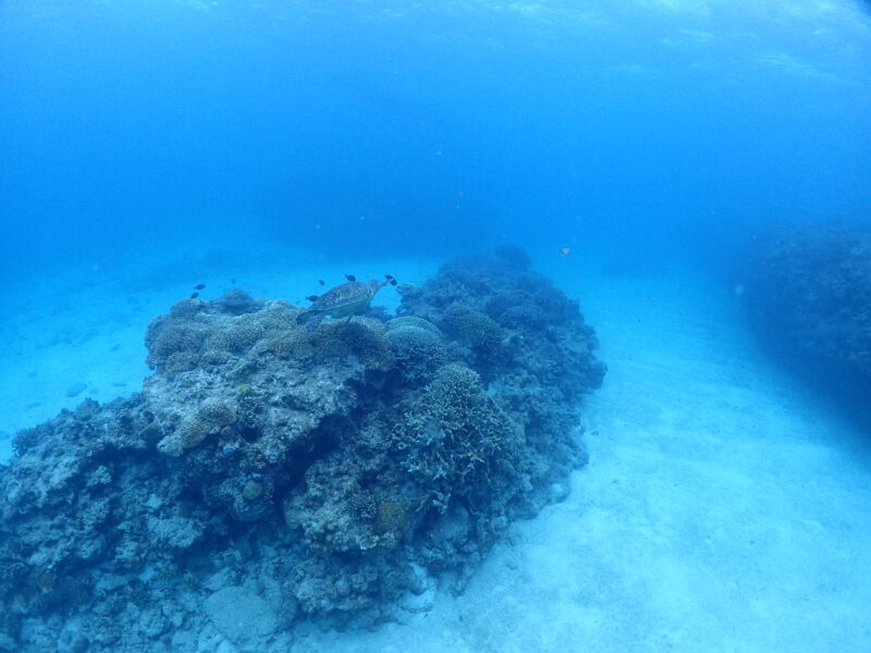 三日月の根にh、カメの寝床が2か所!サンゴの植え付けあとも観察しました。