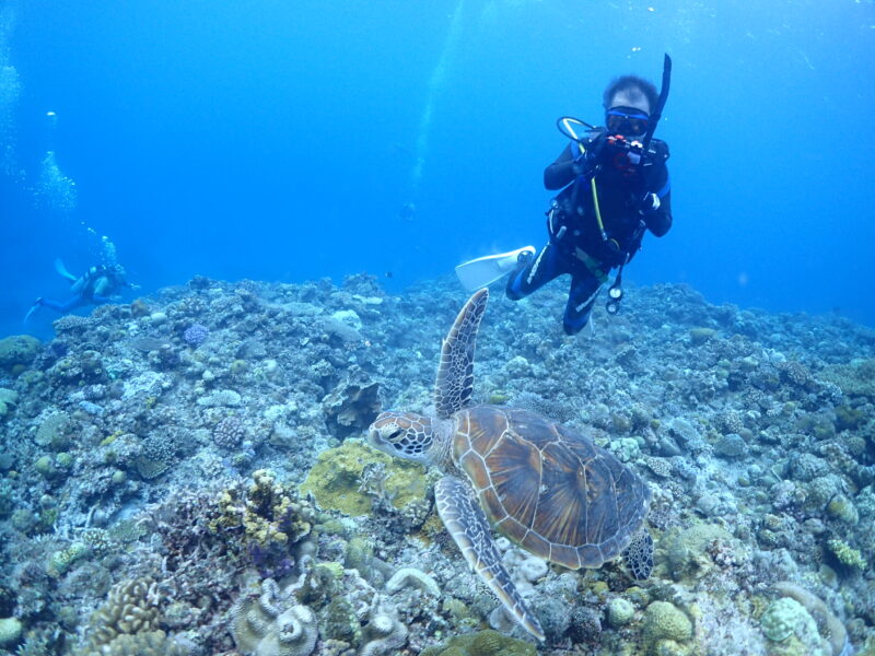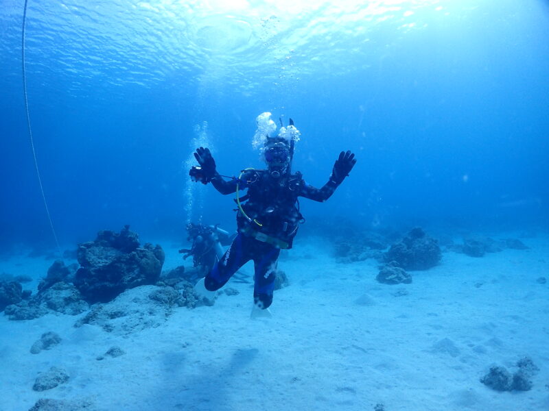 京都出身のオカン。リベルテで2003年にオープンウォーターを取得し、着々と沖縄移住を計画し2004年に実行、そしてインストラクターに。