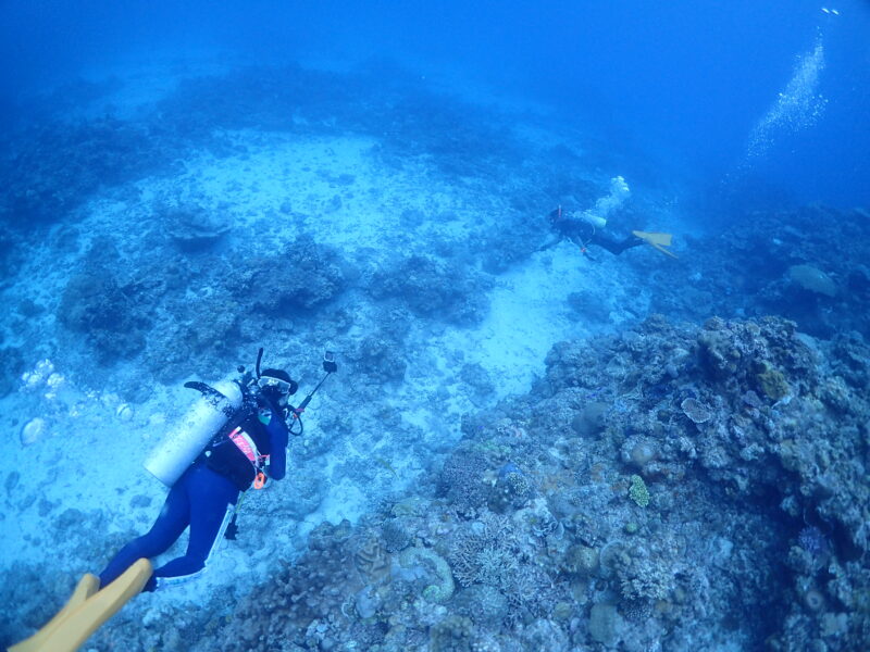 2本目:座間味島(ドラゴンレディー)透明度20m 水温:27℃ 流れ:なし IN:12:06 OUT:12:51 TIME:45分 MAX:13.4m 平均:9.2m
