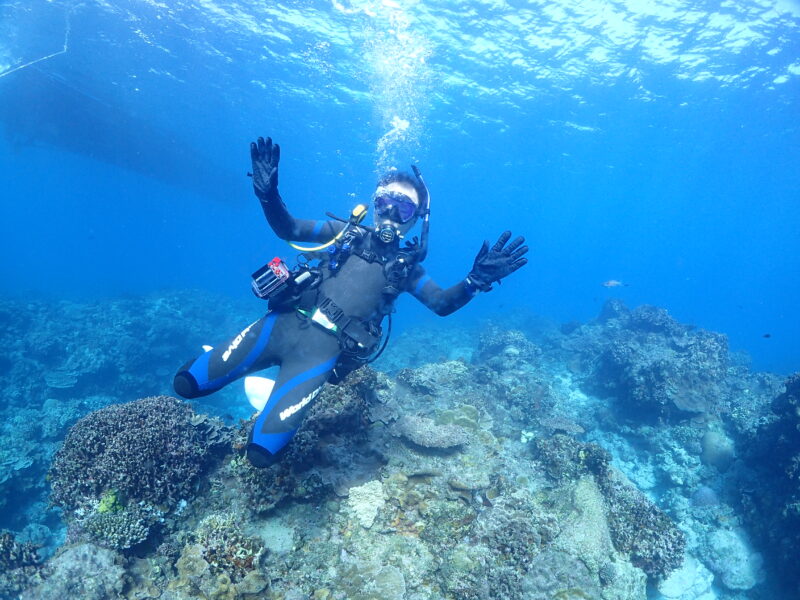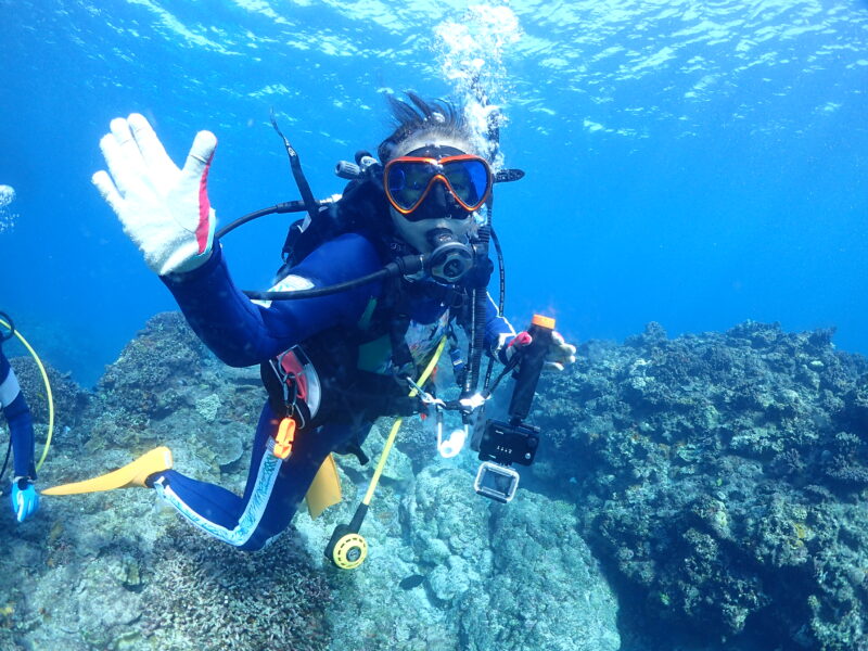 京都出身のオカン。リベルテで2003年にオープンウォーターを取得し、着々と沖縄移住を計画し2004年に実行、そしてインストラクターに。