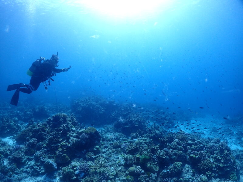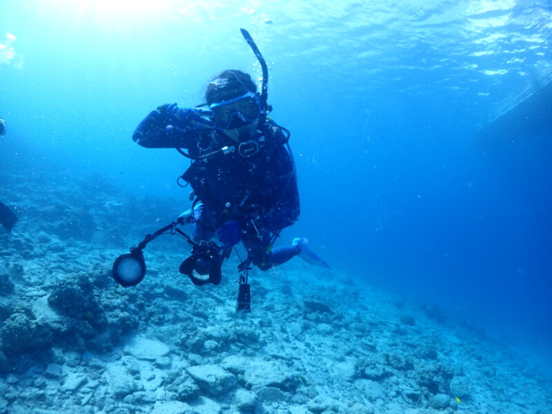 京都出身のオカン。リベルテで2003年にオープンウォーターを取得し、着々と沖縄移住を計画し2004年に実行、そしてインストラクターに。