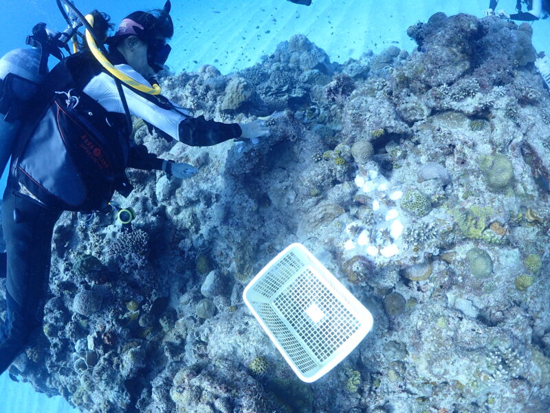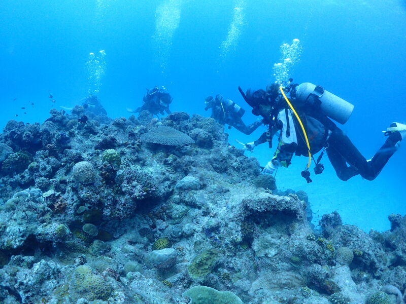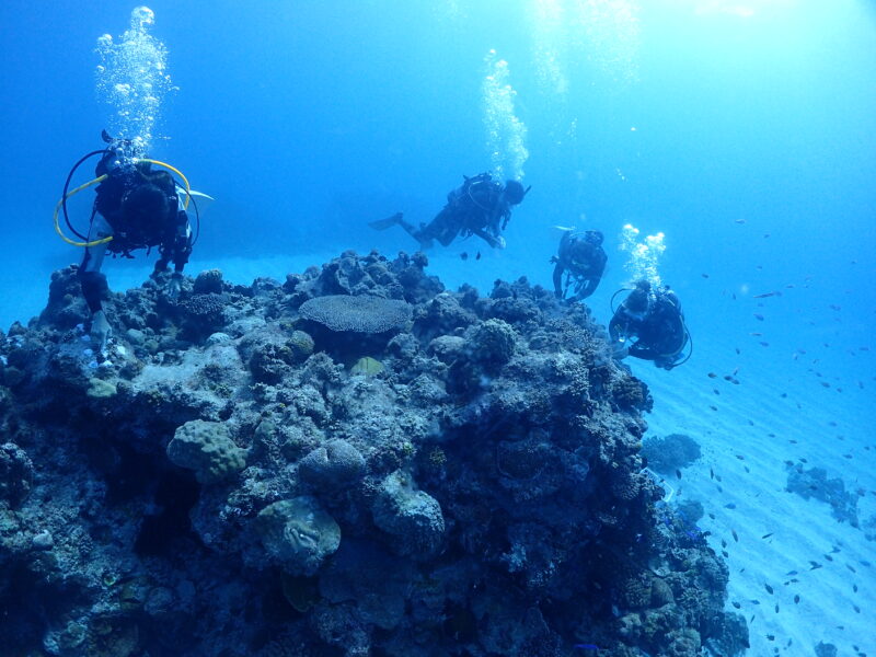 今日は、美ら海振興会の活動でサンゴの植え付けダイブ&レイシガイ駆除で