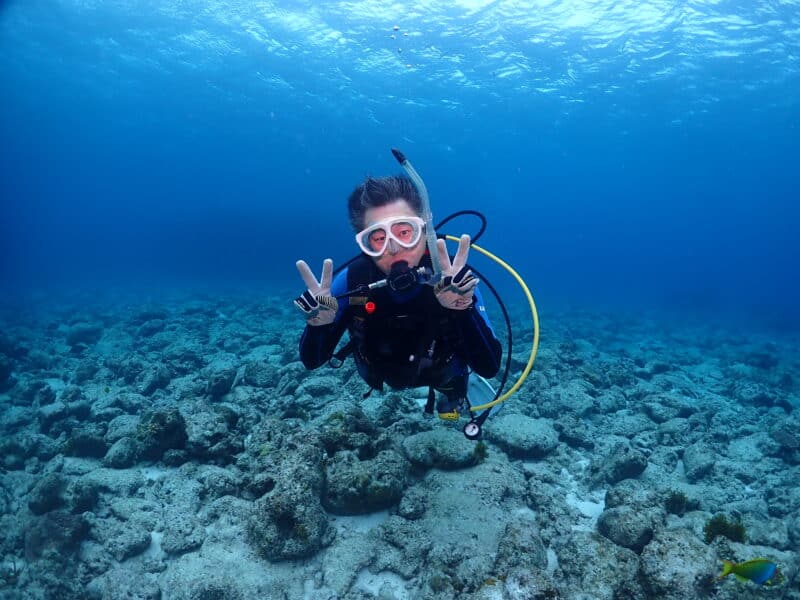 気温:21℃ スーツ:ドライスーツ 担当スタッフ:仲正祐介 ←写真のダウンロードはこちらから!風速:北北東5m/s 波:2.5m→2m うねり:なし 透明度20m