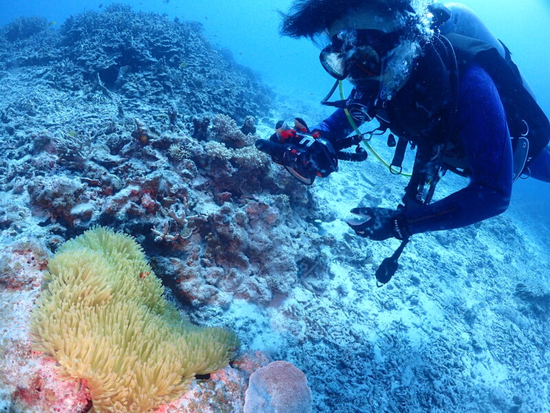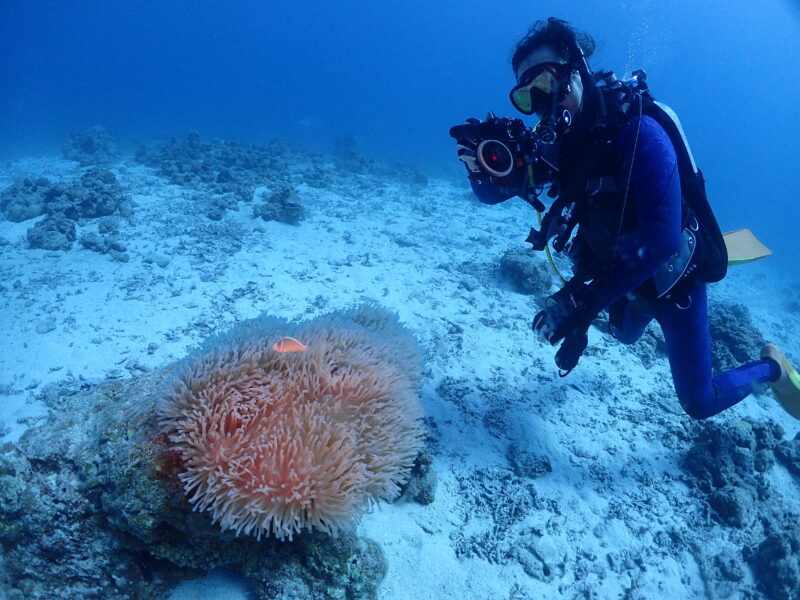 京都出身のオカン。リベルテで2003年にオープンウォーターを取得し、着々と沖縄移住を計画し2004年に実行、そしてインストラクターに。