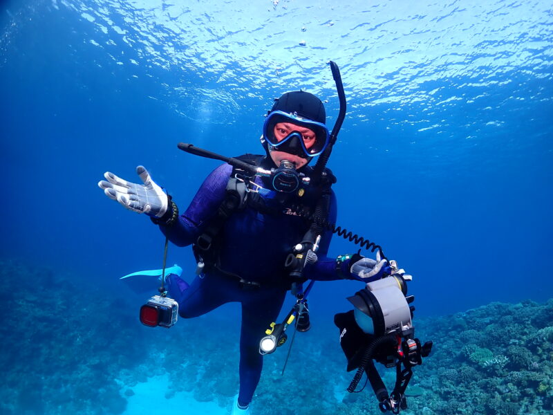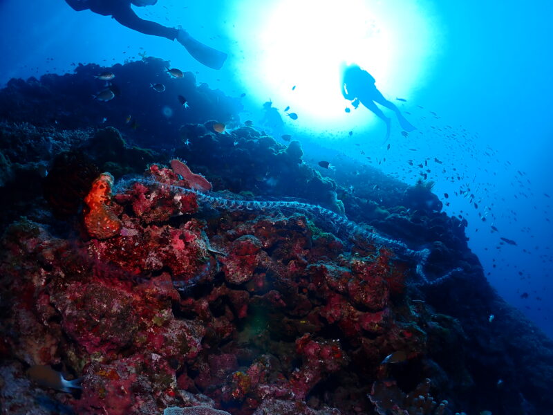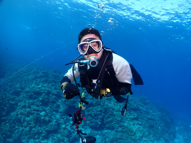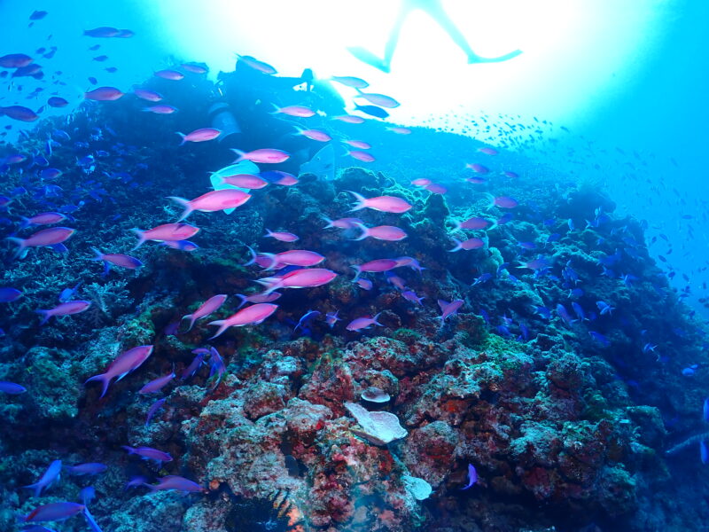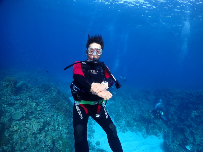 気温:21℃ スーツ:ウェット5mm 担当スタッフ:仲正祐介 ←写真のダウンロードはこちらから 風速:北東6m 波:1.5m 透明度20m~25m 水温:24℃