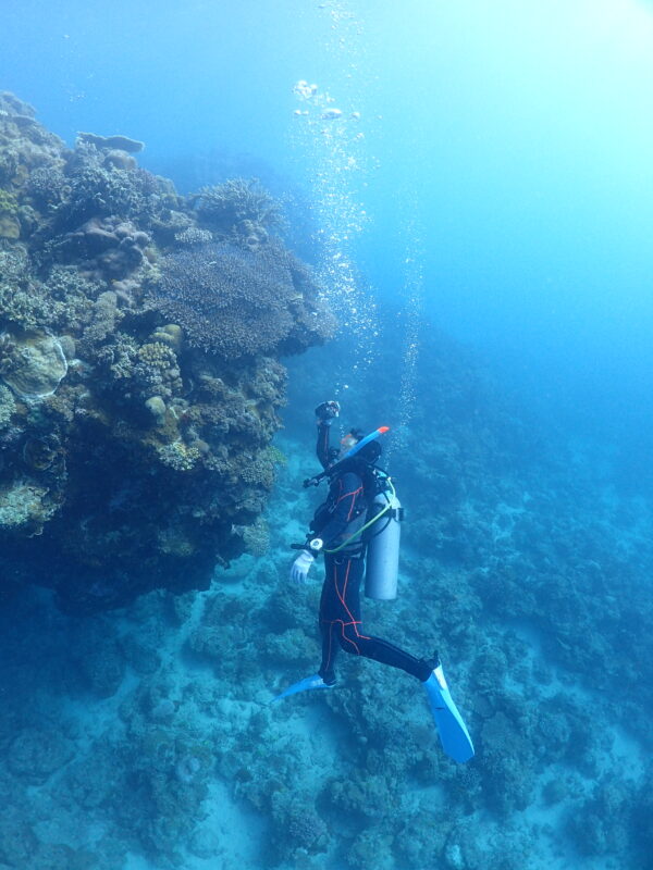 京都出身のオカン。リベルテで2003年にオープンウォーターを取得し、着々と沖縄移住を計画し2004年に実行、そしてインストラクターに。