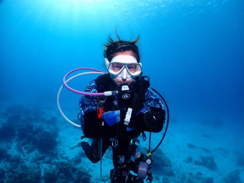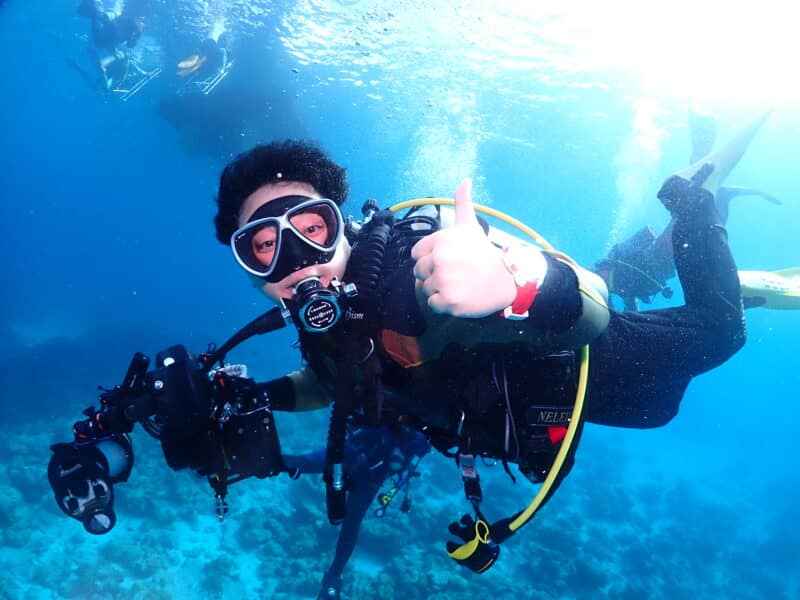 現在は那覇店で講習、ガイドを担当しています。