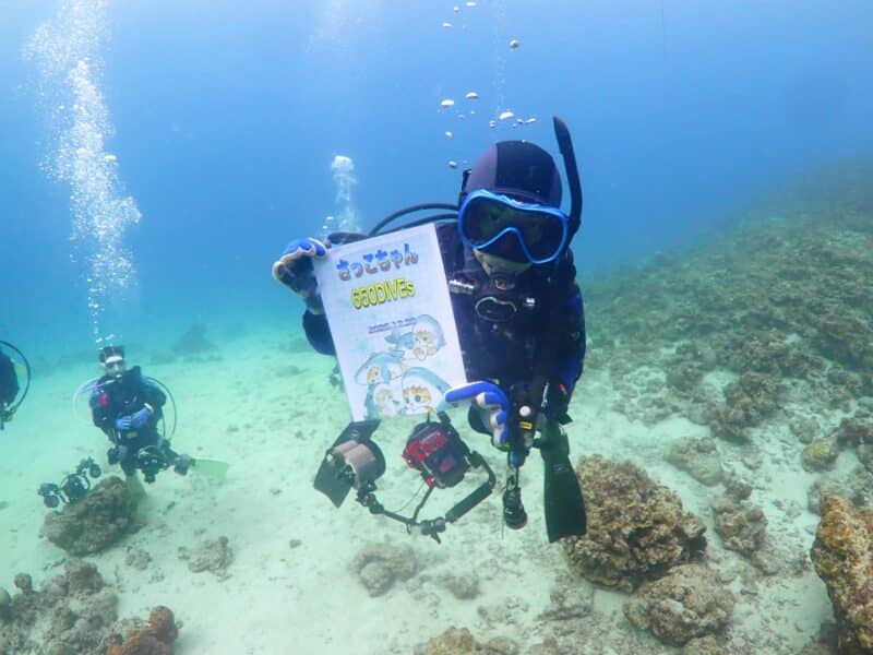 さめにゃんとお祝い!これからも安全に楽しく潜ってくださいね!