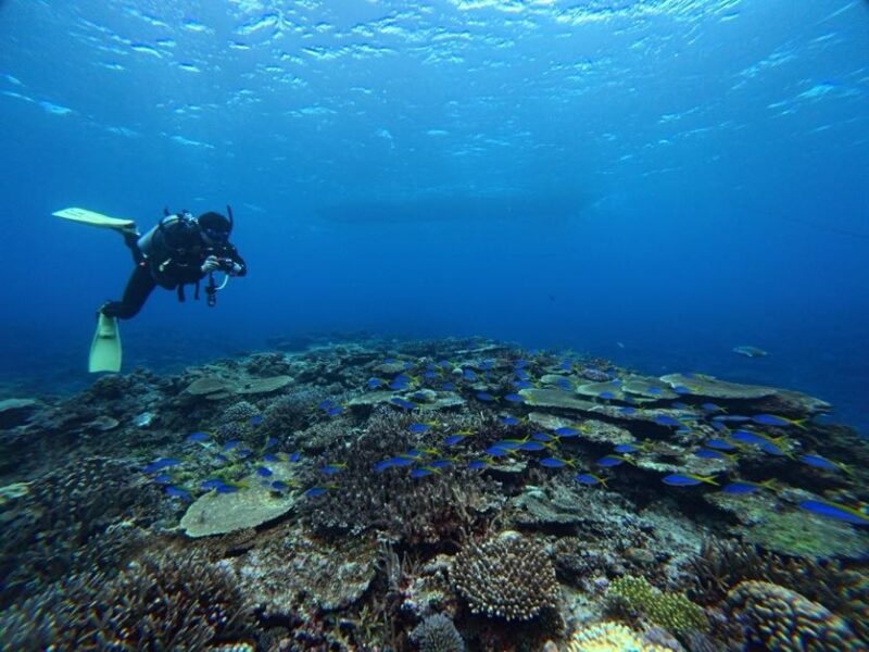 現在非常勤スタッフで、無人島への半日ダイビングを担当しています。 船長もしてますよ~