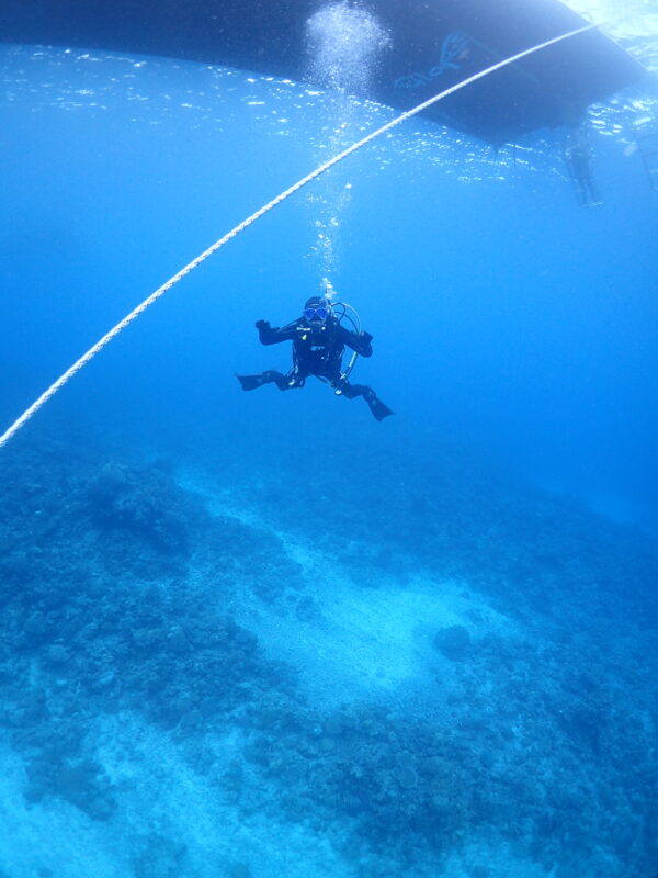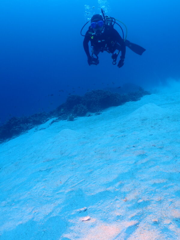 気温:20℃ スーツ:ドライスーツ 担当スタッフ:池田真佑美←写真のダウンロードはこちらから!風速:東北東9m/s 波:1.5m うねり:なし  透明度25m