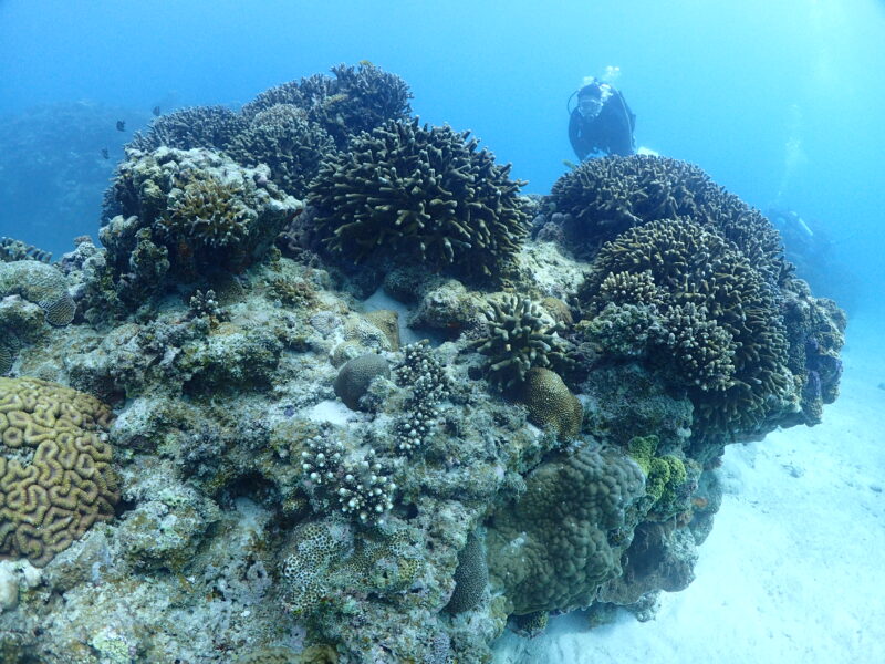 立派なテーブルサンゴがあちこちに👏他のポイントではあまり見られない光景✨