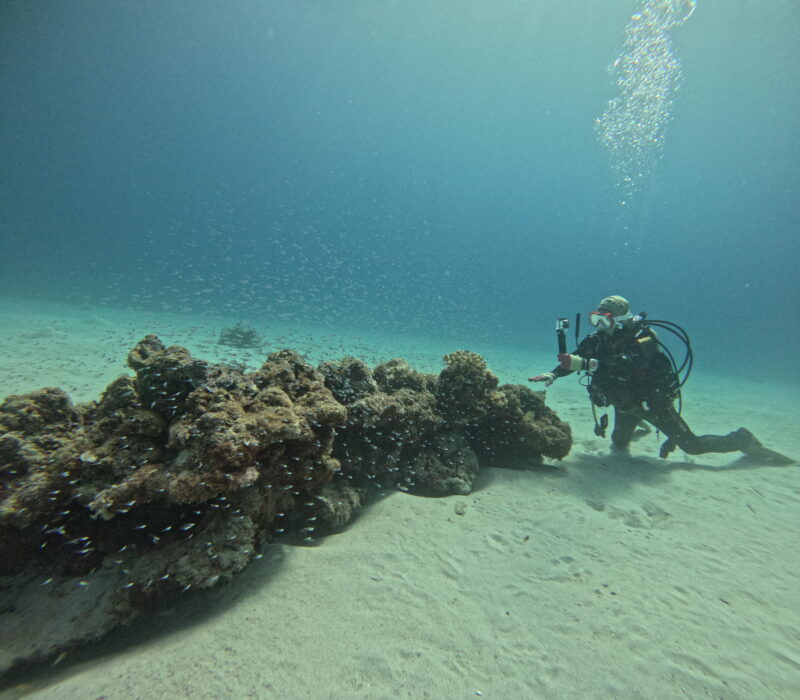 1本目:座間味島(アイダー)水温:22℃ 流れ:なし IN:10:13 OUT:10:57 TIME:44分 MAX:12m 平均:8m