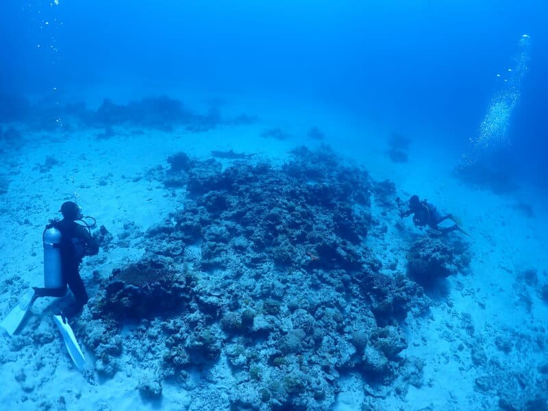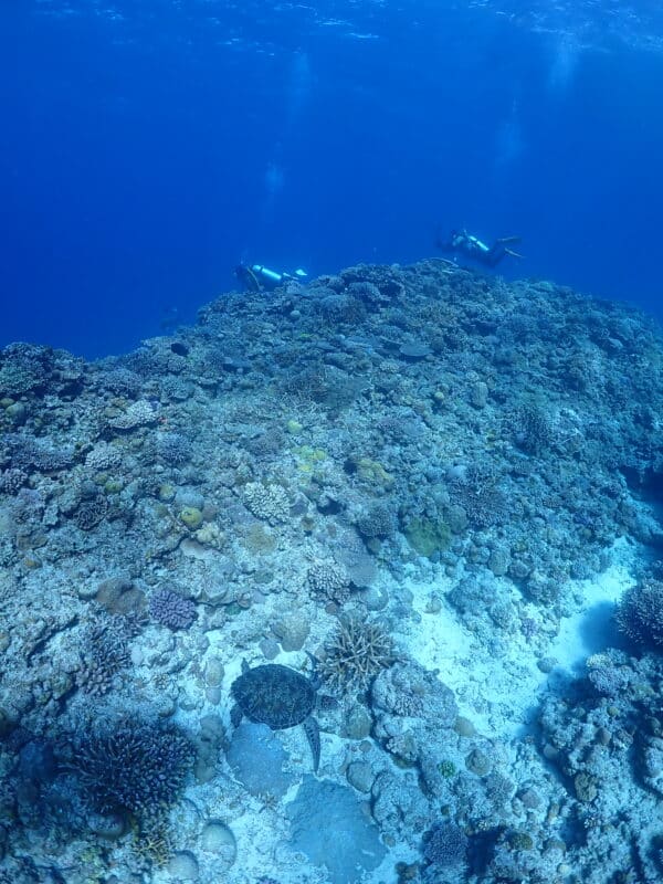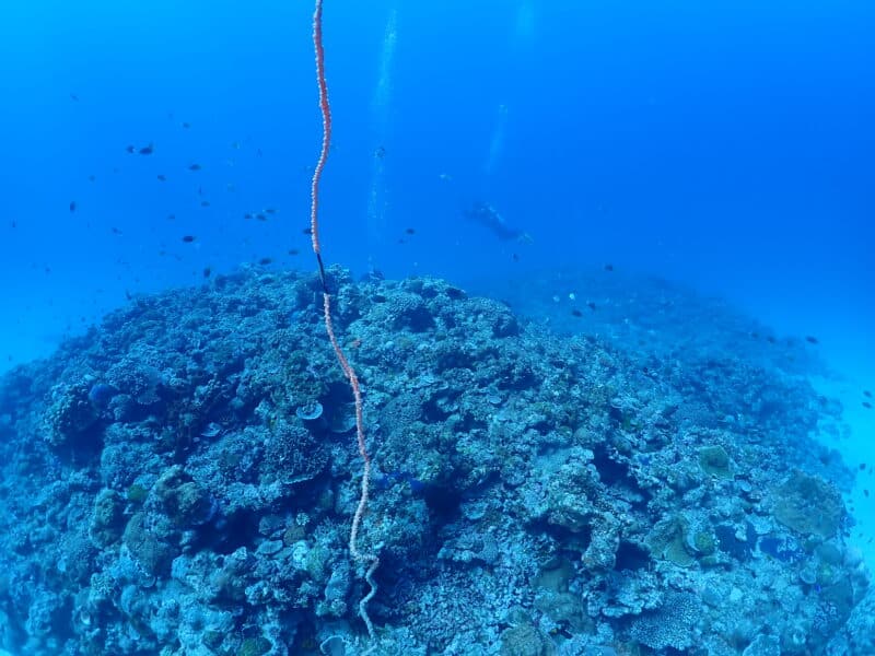 浅場のサンゴとノコギリダイ🐟