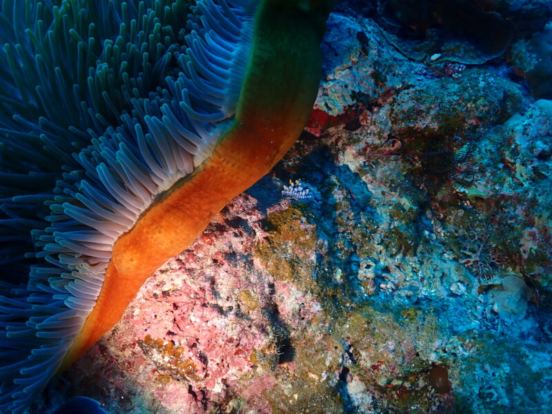 カクレクマノミのイソギンチャク下にはタテヒダイボウミウシとカニ🦀