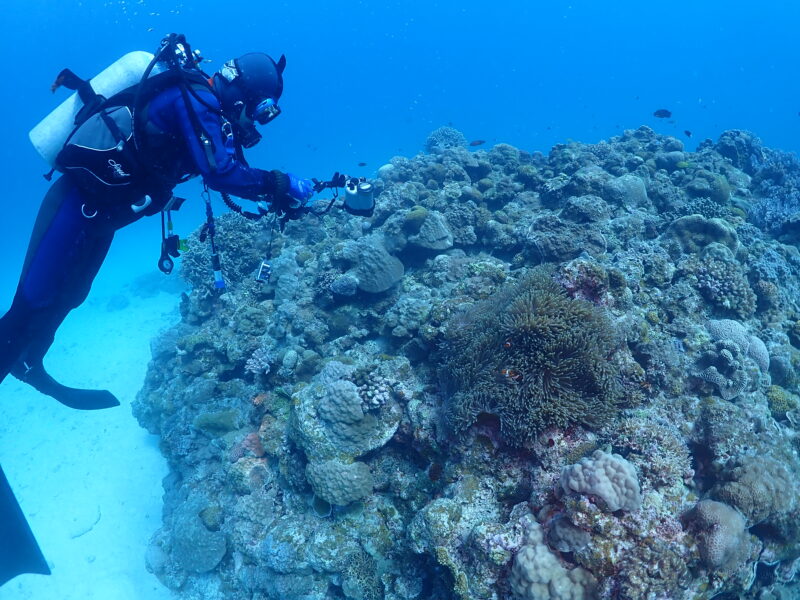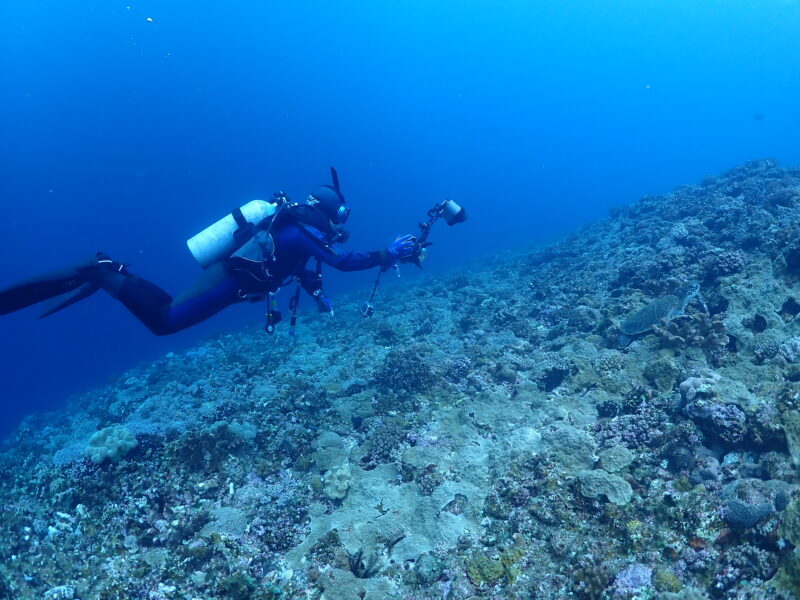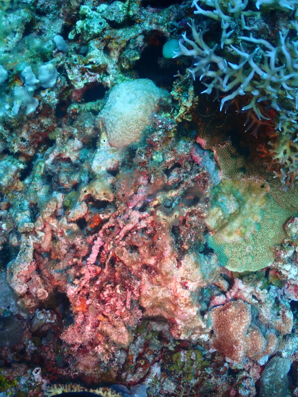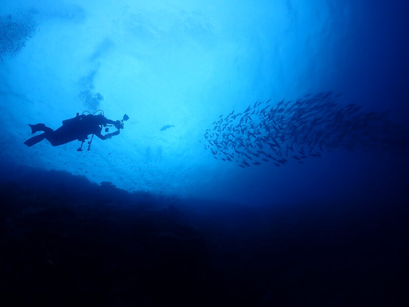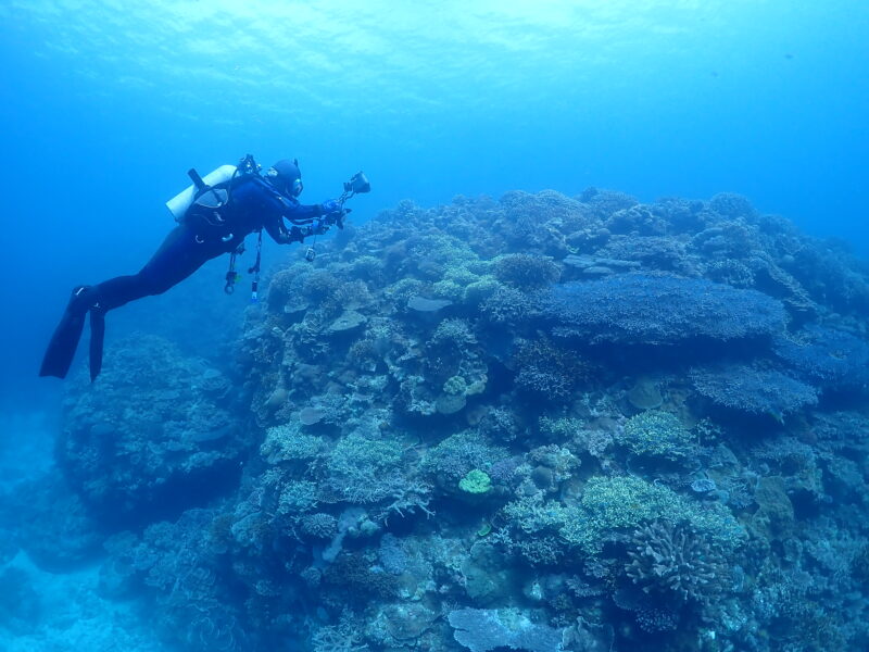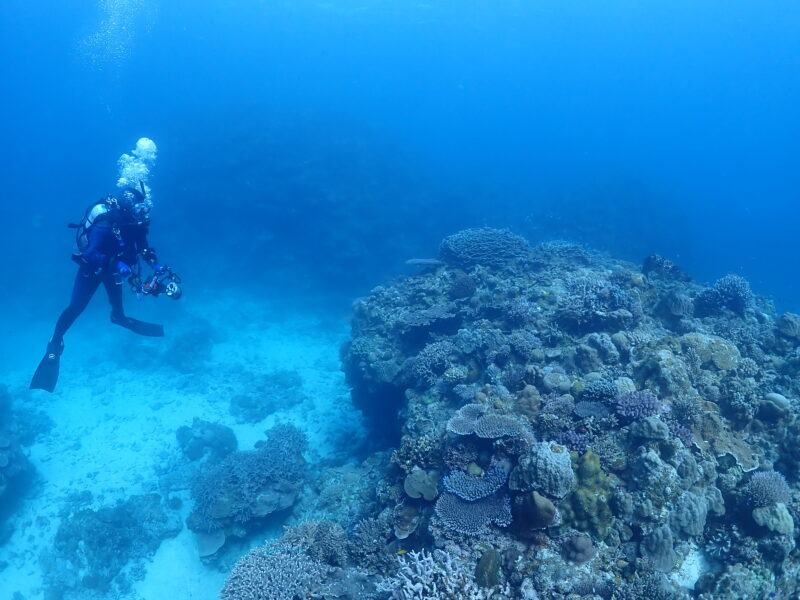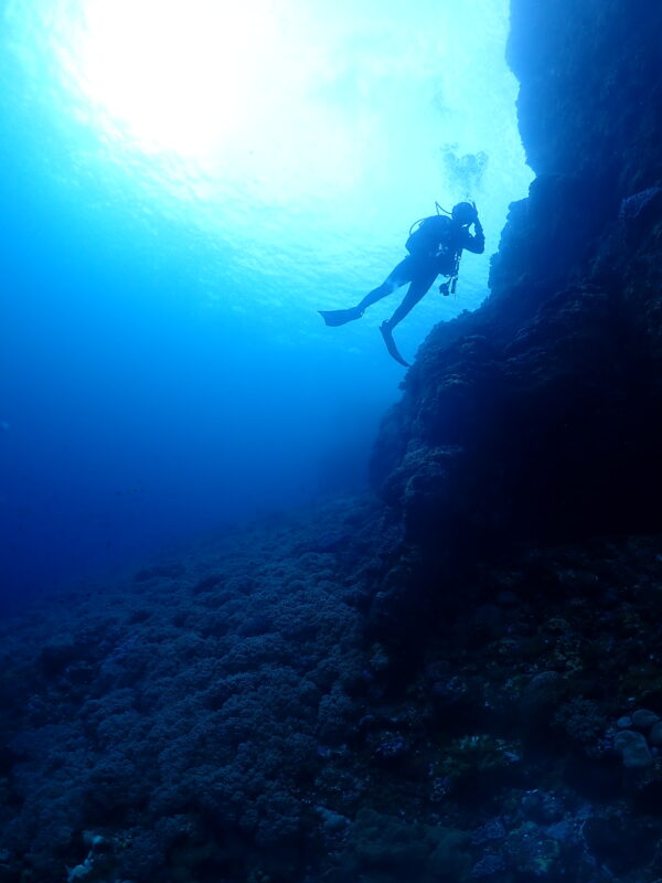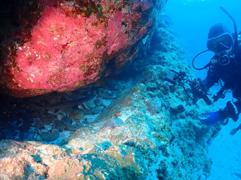 エントリー直後に【ここのサンゴ、写真良い感じですよ~!】と合図だしたら・・・