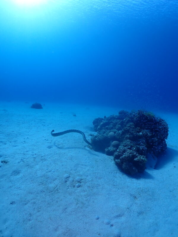 ミナミホタテウミヘビ!の周りにはハゼの取り巻きがいっぱいでした😲
