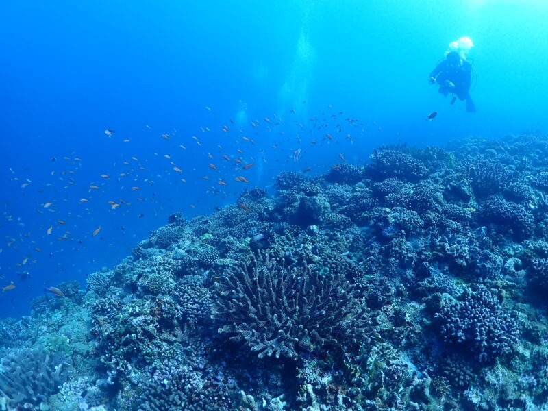 深場のサンゴゾーンはキンギョハナダイもいて、お魚いっぱいです!