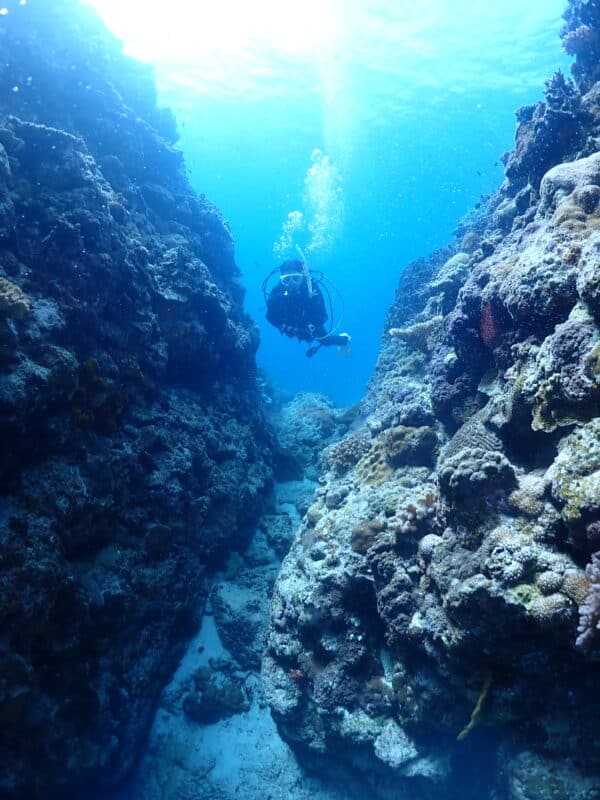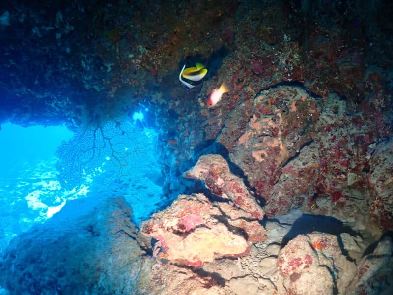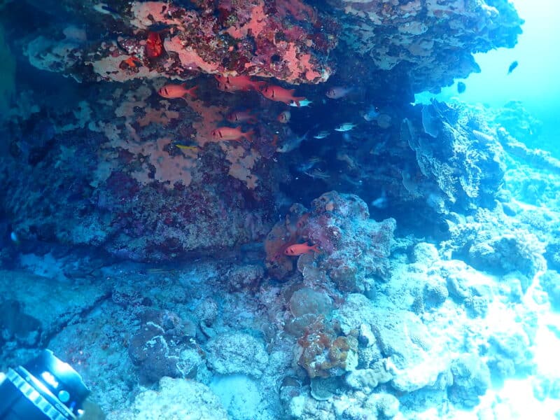 オーバーハングには、オニハタタテダイ・スミツキベラ・ネッタイミノカサゴがいました!