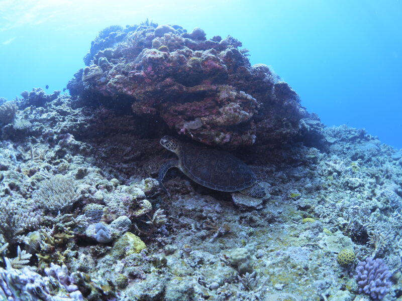 自分で甲羅をゴシゴシ掃除してた「アオウミガメ」を発見!