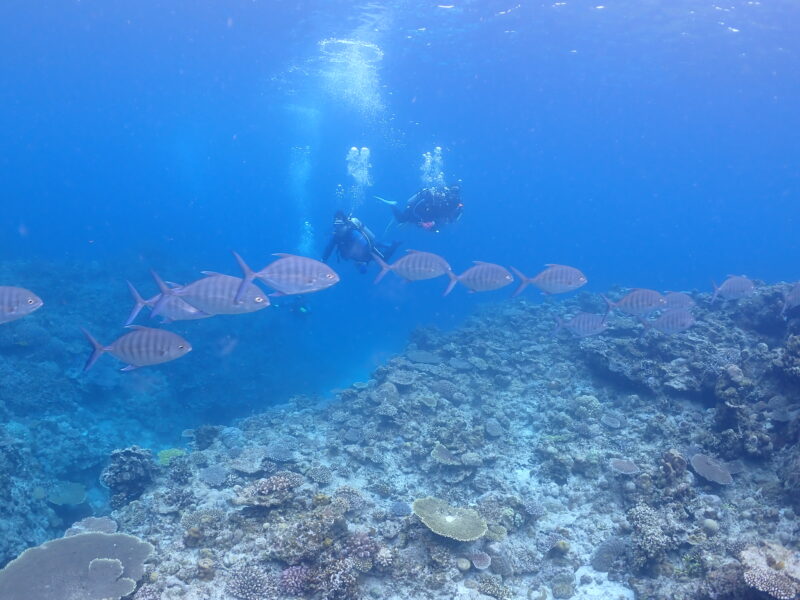 クロヒラアジの群れが目の前を通りすぎていきました!