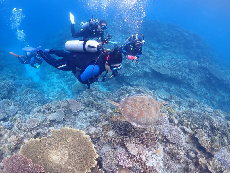 京都出身のオカン。リベルテで2003年にオープンウォーターを取得し、着々と沖縄移住を計画し2004年に実行、そしてインストラクターに。