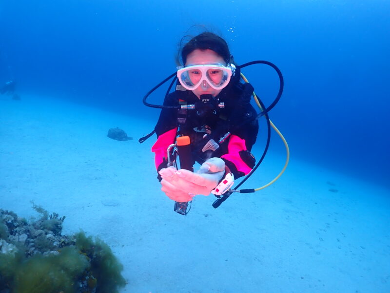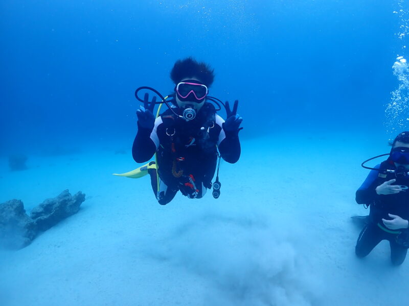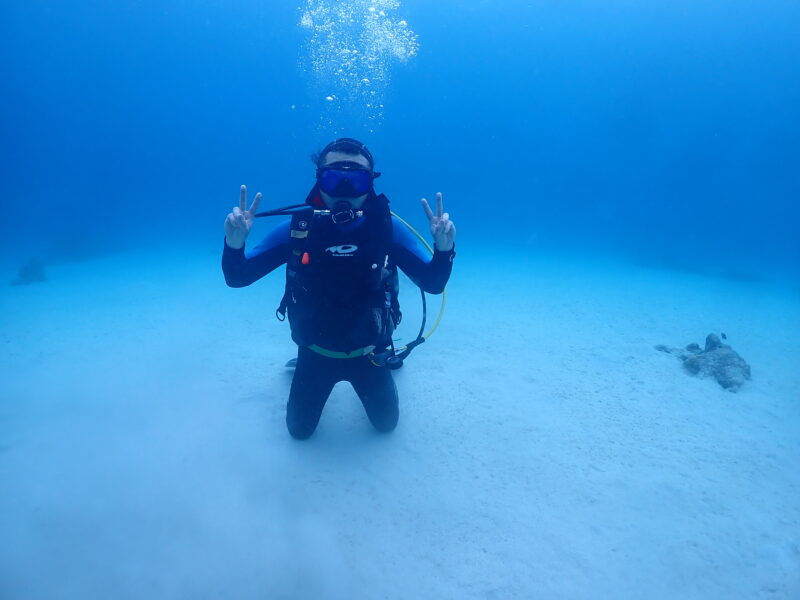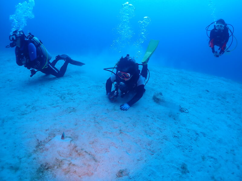 気温:21℃ スーツ:ドライスーツ 担当スタッフ:池田真佑美写真のダウンロードはこちらから!北北東3m/s 波:2m→1.5m うねり:あり  透明度15~20m
