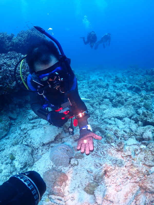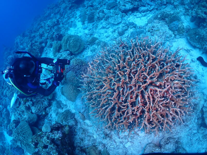 サンゴのすき間に産卵されているので撮るのが大変😅