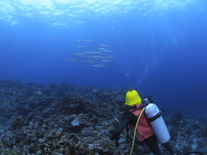 オオメカマスの群れがおかちゃんの前を通過!迫力ありましたねー