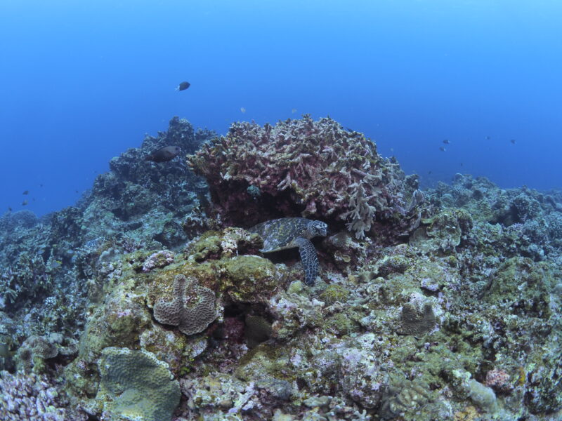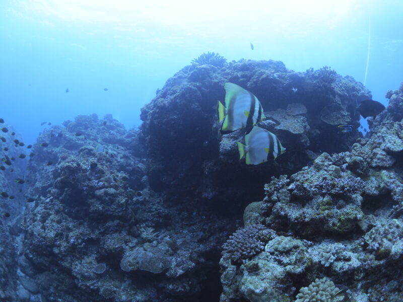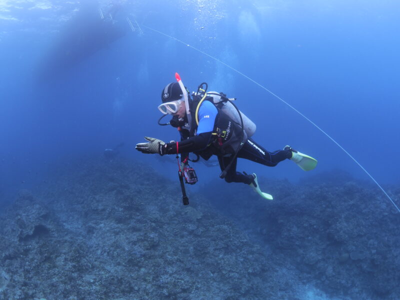 2本目:渡嘉敷島(野崎)透明度25m 水温:24℃ 流れ:あり IN:12:07 OUT:12:47 TIME:40分 MAX:18m 平均:12m
