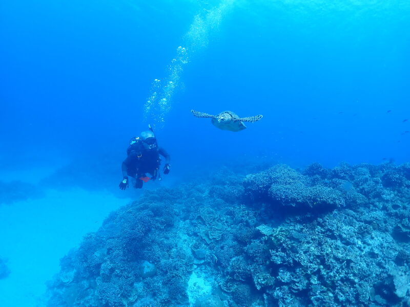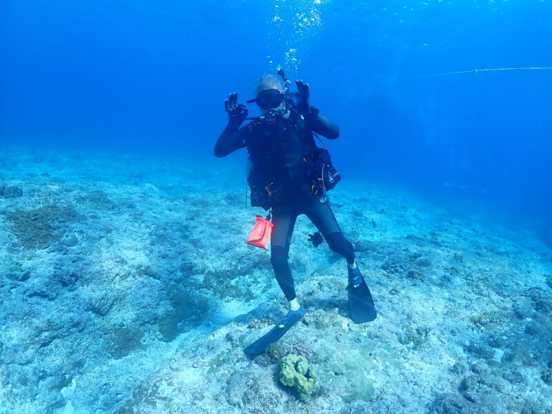 京都出身のオカン。リベルテで2003年にオープンウォーターを取得し、着々と沖縄移住を計画し2004年に実行、そしてインストラクターに。