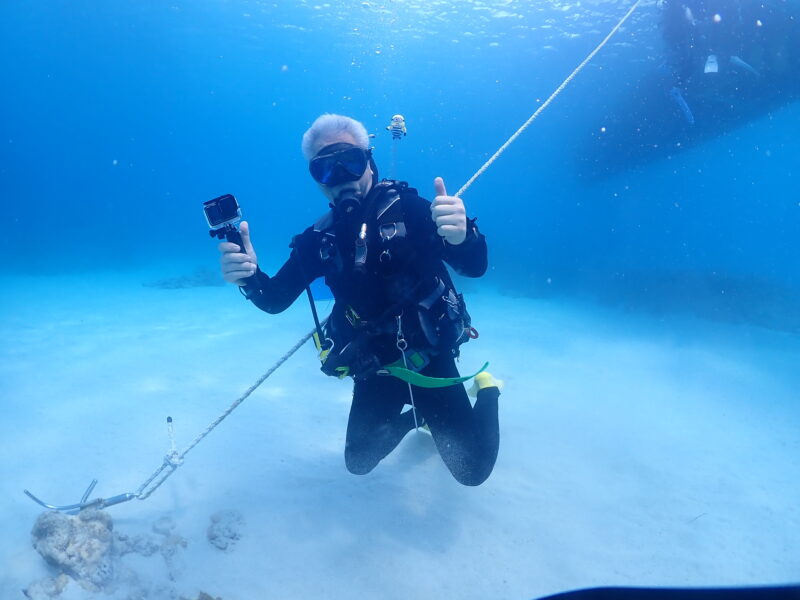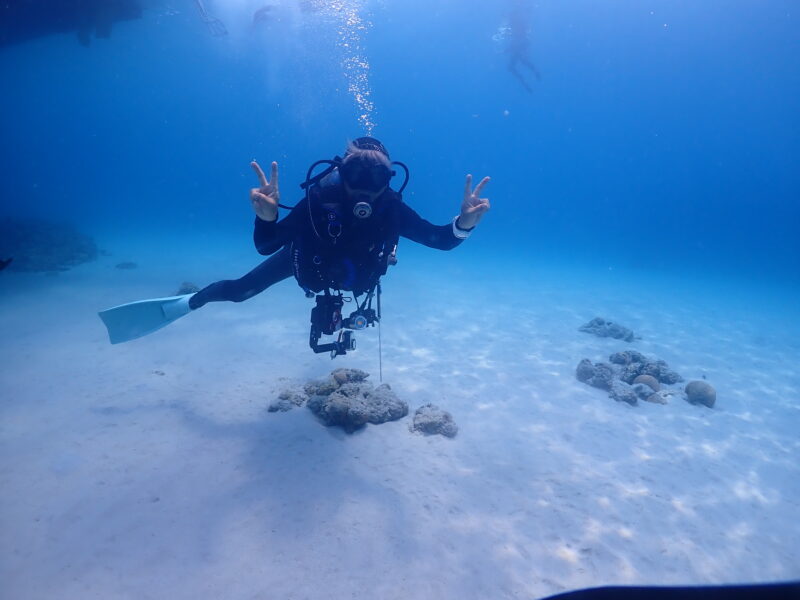 京都出身のオカン。リベルテで2003年にオープンウォーターを取得し、着々と沖縄移住を計画し2004年に実行、そしてインストラクターに。