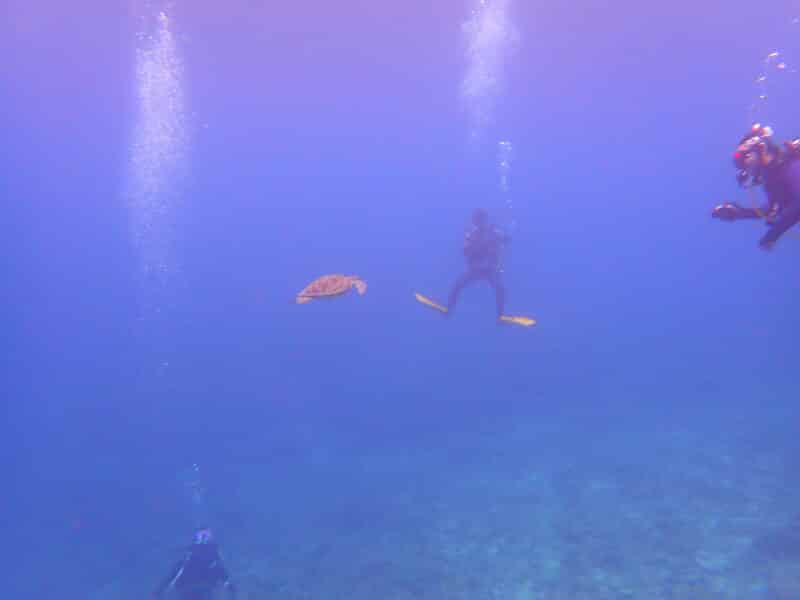 コブシメは見れずでしたがウミガメはかろうじて1匹!奇跡的にこっちへ来てくれて、