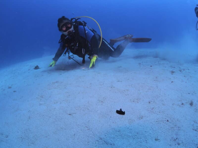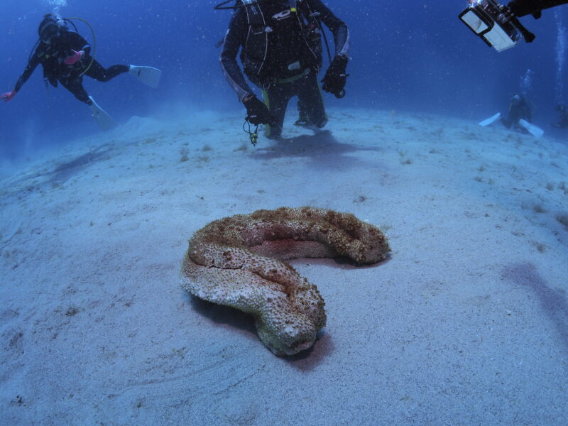 アデヤカバイカナマコにめっちゃ小さい「クマノミ」の幼魚がついてました!