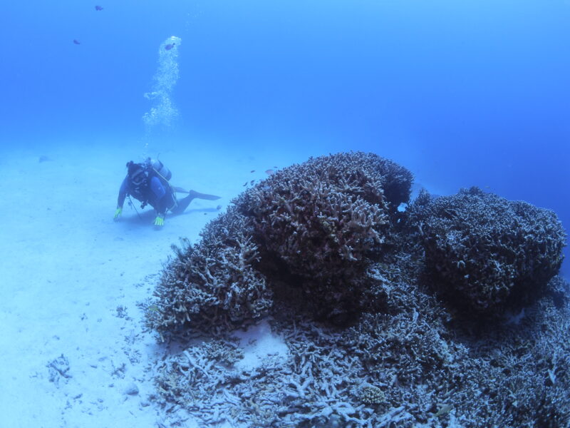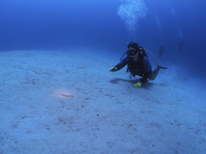 気温:23℃ スーツ:ドライスーツ 担当スタッフ:杉本京子←写真のダウンロードはこちらから!北西5m/s 波:1.5m→1m うねり:あり  透明度20m
