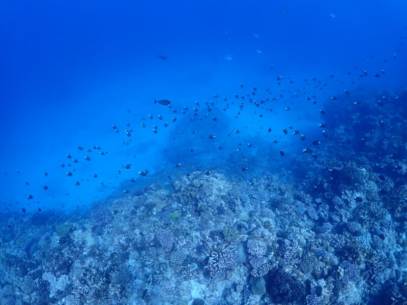 気温:27℃ スーツ:ウエット5㎜+フードベスト 担当スタッフ:池田真佑美←写真のダウンロードはこちらから!南南西5/s 波:1.5m うねり:なしり 透明度20m
