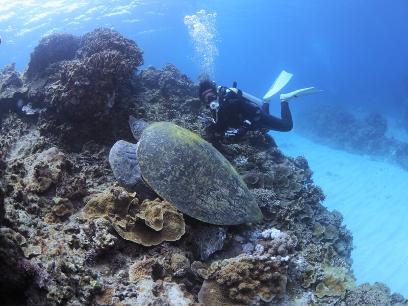 2本目エントリーしたら超巨大アオウミガメを発見!!