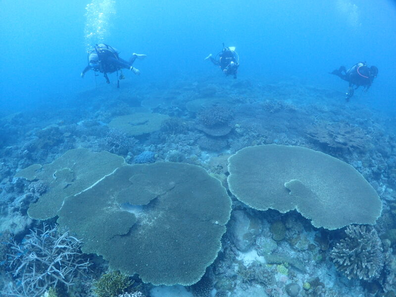 クエフ島北はチービシ諸島 クエフ島の北側にあるポイントです。 チービシ諸島で一番サンゴが元気なポイントで、枝サンゴやテーブルサンゴが元気に育っています。 2000年前後の高水温で全滅してしまったサンゴでしたが、20年かけて再生してきました。