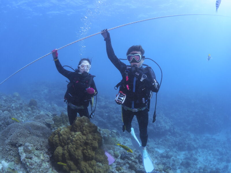 アンカーリングでエントリーします。 エントリー場所は水深10mほどのところで、サンゴの群生が見られます。エントリー場所は流れもなく、深度も浅いため深場に行かなければ初心者やブランクダイバーでも十分に楽しむことができるポイントです。