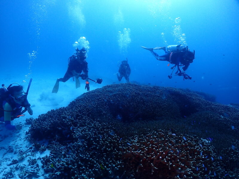浅場ではアオウミガメもよく遭遇します。 初心者の方は浅場のサンゴなどをのんびりと眺め、上級者の方はドリフトダイビングで沖の根まで散策するダイビングを楽しめます。 なお、アリガーの流れは沖の流れと逆に流れることがあります。 特に沖の流れが強い場合は湾内の流れが逆流します。 アンカーリングの際には、逆流する流れを利用すれば、楽にボートに戻ることができるでしょう。 初心者も上級者も楽しめるポイント、アリガーケーブル、ぜひ楽しんでみてください。